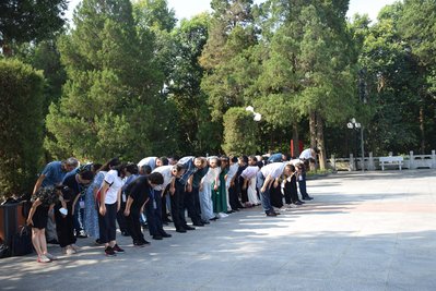 在实景党课环节,全体学员前往金寨红军广场接受红色教育。大家拾级而上,步行至革命烈士纪念碑前肃立,举行向革命烈士纪念碑敬献花篮仪式,并深深三鞠躬,表达对革命烈士的深切缅怀和无限敬仰。在革命烈士纪念碑下,全体党员在夏劲松的带领下,面对鲜艳的党旗重温入党誓词。大家怀着万分崇敬的心情,跟随讲解员依次参观了金寨红军纪念堂、红军烈士陵园、金寨县革命博物馆、洪学智将军纪念馆等。通过近距离聆听革命先辈的感人故事,实地接受纯洁党性的红色教育,大家汲取了不忘初心的力量,收获了继续前行的激情和动力。