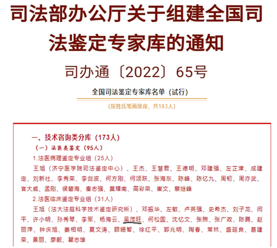 法医学院吴茂旺教授入选全国司法鉴定专家库