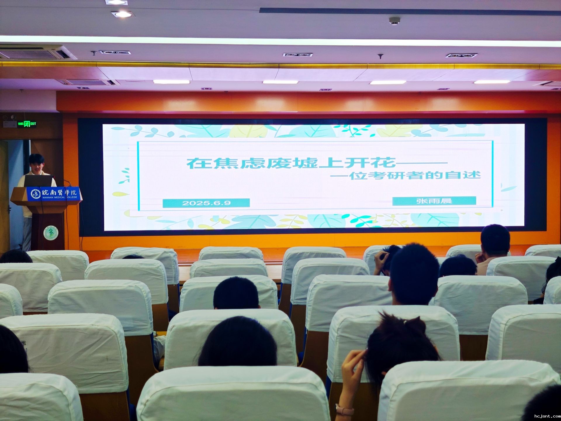 活动现场(三) 圆梦皖医:考研逐梦,书写青春华章 医学之路既需立足当下探索,也离不开对未来的追逐。2020级临床专业卢凯同学以“医路研途,青春圆梦”为题,讲述考研路上的坚持与收获。他详细介绍了自己的考研复习计划,包括时间安排、复习资料选择以及心态调整等。2020级免费定向班张雨晨同学带来“在焦虑废墟上开花—一位考研者的自述”,分享自己如何在焦虑中破局,最终实现梦想。她坦言,考研过程中难免会产生焦虑情绪,但关键是要学会如何应对。2020 级临床专业张睿同学以“多元历练赋能,成长照亮研途”为主题,分享在丰富历练中为考研蓄力的经验。他介绍了自己在大学期间参与科研项目、社会实践、志愿服务等经历,表示这些经历不仅丰富了自己的人生阅历,更培养了科研思维和团队协作能力,为考研打下了坚实的基础。