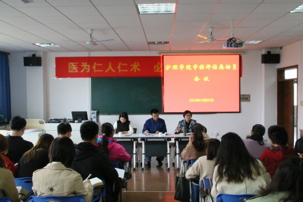 为抓紧预评估整改工作,推进迎评促建,2018年10月25日下午,护理学院召开召开本科教学审核评估工作再动员会议。学院全体教职工、各临床教研室主任参加会议。学院党委副书记吴梅主持会议。