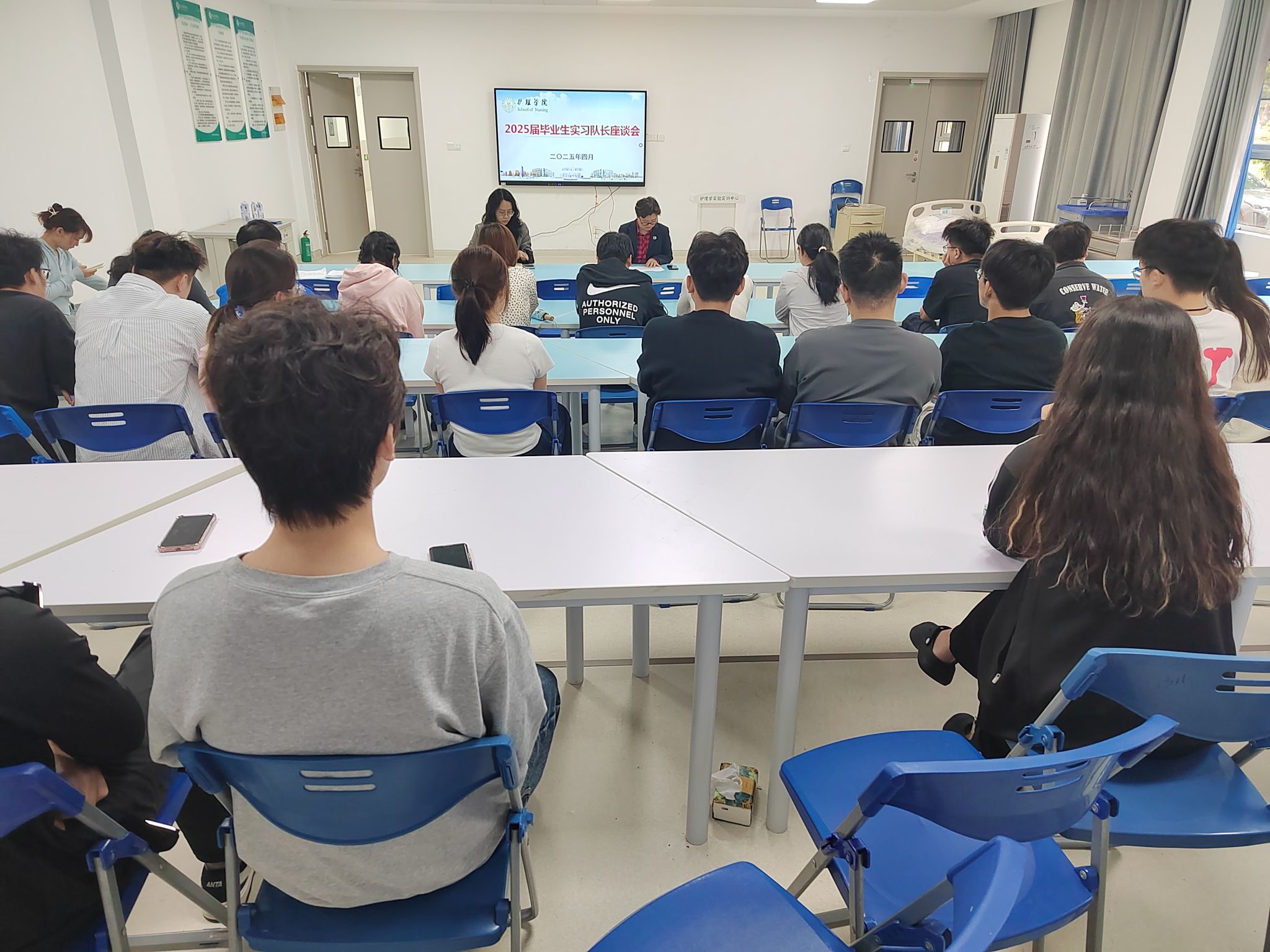 为进一步了解2025届毕业生实习带教情况,提高实践教学水平,4月23日上午,护理学院在一号楼智慧教室召开毕业年级实习队长座谈会。护理学院党委副书记王亚娟、副院长崔慧霞和实习工作秘书、各实习队长参加会议。会议由崔慧霞主持。