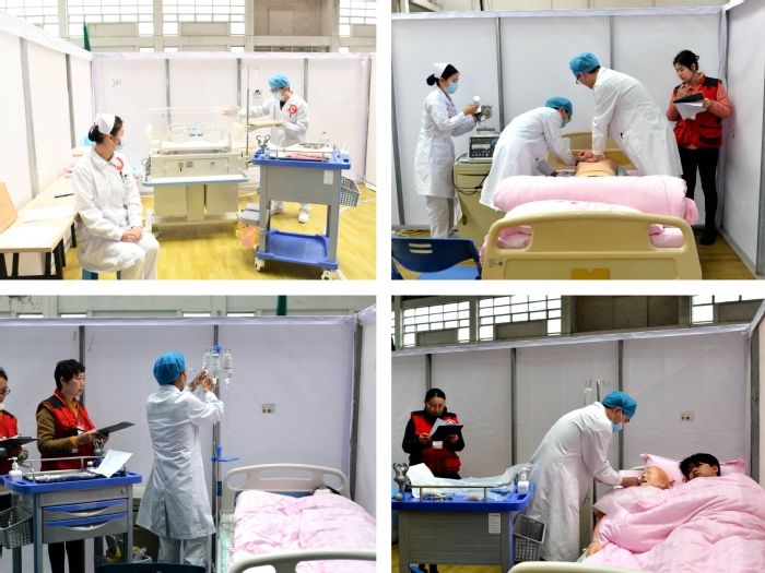 同场竞技显身手,团结进取展风采。为进一步强化护理临床实践教学,提高教育教学水平和人才培养质量,2023年3月19日,以“医心向党、医教协同、医学创新”为主题的第九届大学生护理临床技能竞赛在滨江校区体育馆隆重举行,来自省内10家实习教学医院的11支代表队共44名选手参赛。