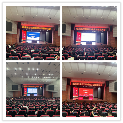 为扎实做好实习生思想教育及实习安排工作,5月15日,学院在滨江校区图书信息楼三楼报告厅召开实习动员大会,学院党政领导、实习年级辅导员及全体学生参加会议。会上,院长许力结合自己的学习工作经历,从实习生活的特点、转换角色、找准定位等三个方面介绍了实习生活。副院长陈祥攀介绍了实习医院的总体情况,并就本年度实习医院安排的方案向同学们进行解读。党委书记方基勇就实习管理、安全教育等方面对同学们提出要求,希望实习生提高认识,重视实习,做好规划,正确处理好实习与考研、就业的关系,提高安全防范意识,圆满完成实习任务。