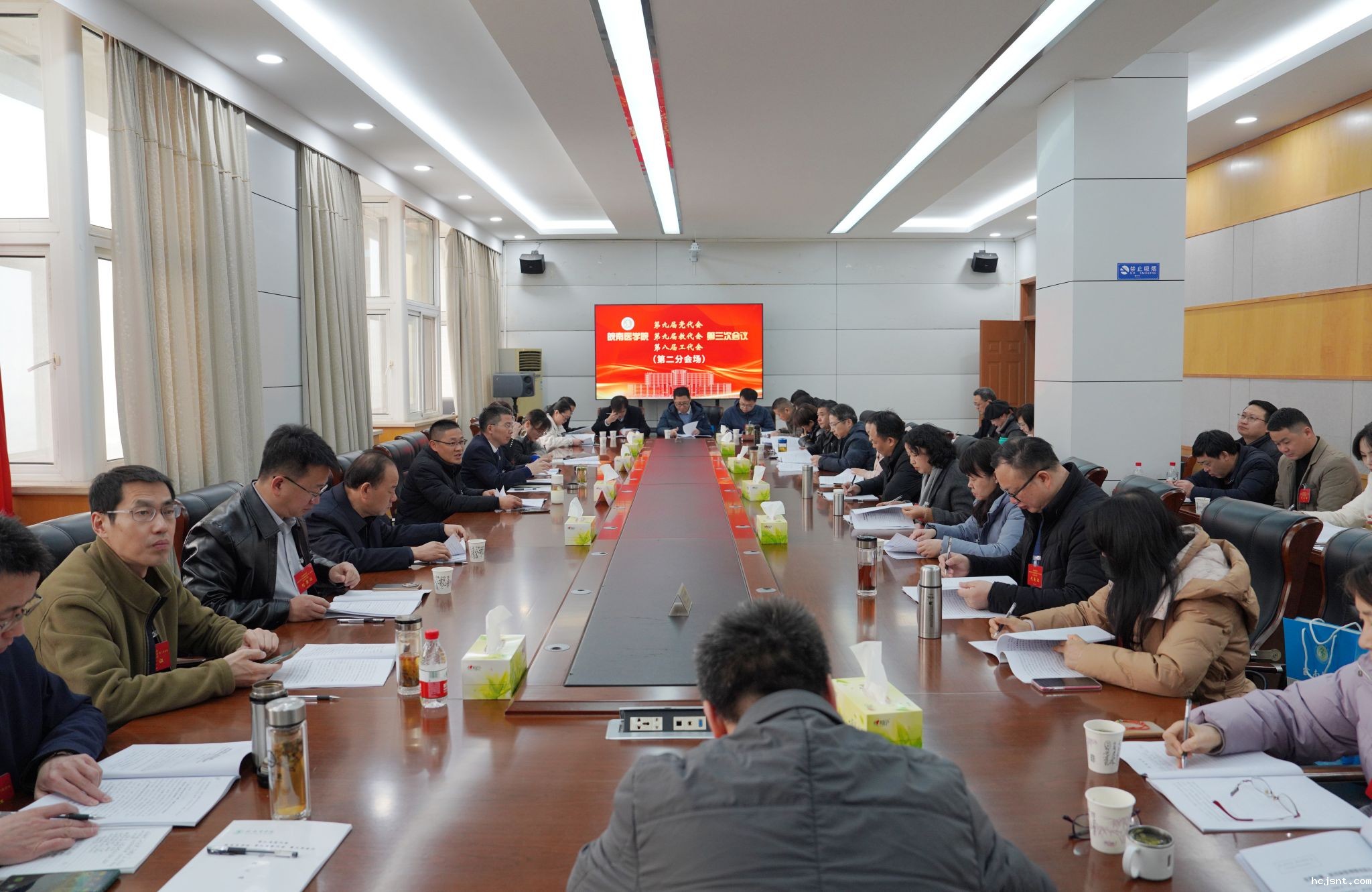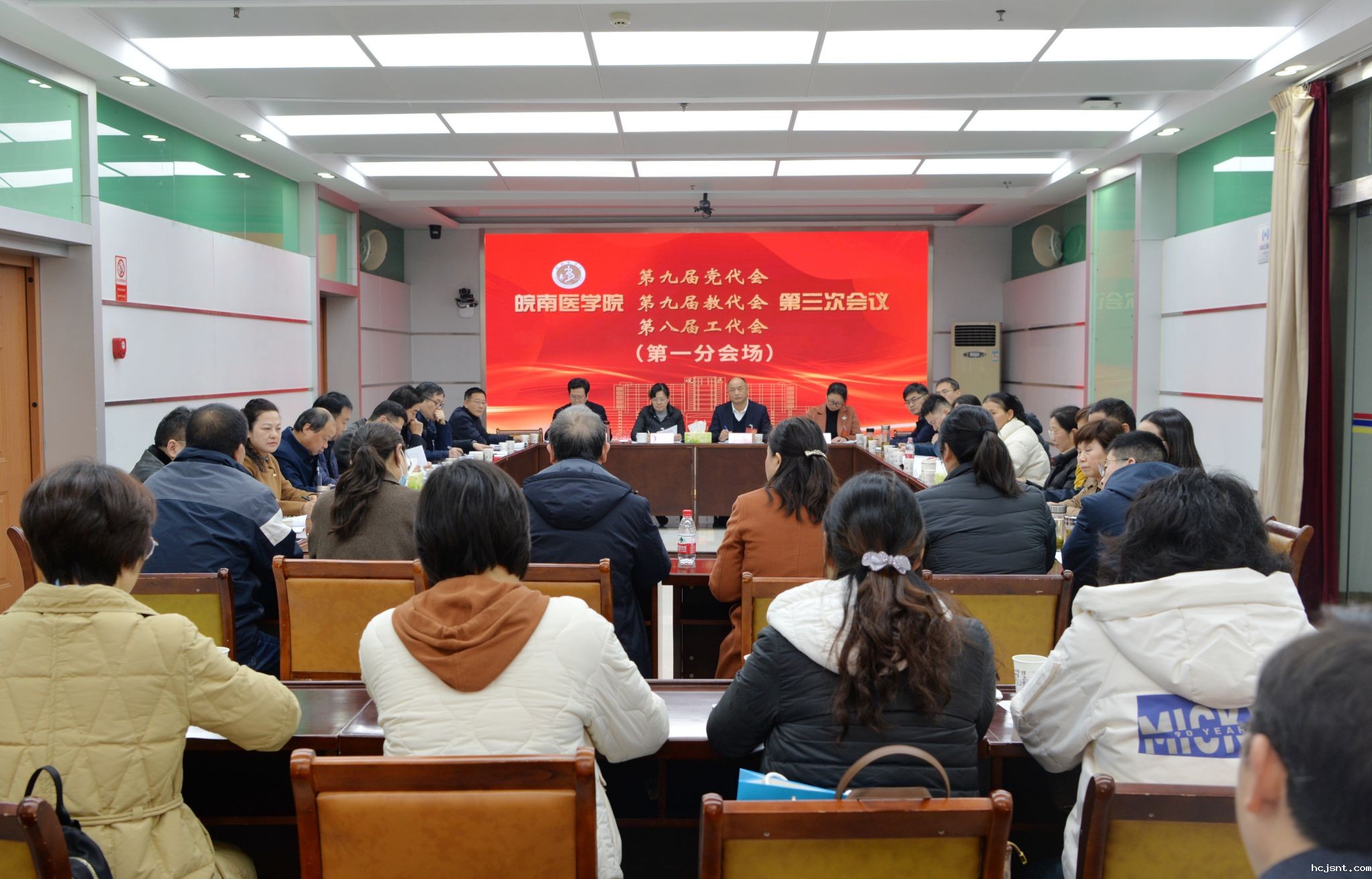 凝心聚力共奋进,奋楫扬帆谱新篇。1月23日上午,我校第九届党代会、第九届教代会暨第八届工代会第三次会议在图书信息楼三楼学术报告厅隆重开幕。在校党委常委夏劲松、姚应水、贾贤燕、文育锋、王保中、陈晓宏、邹莹出席会议并在主席台就座。会议代表共172人参加会议,41名非代表的处级干部列席会议。