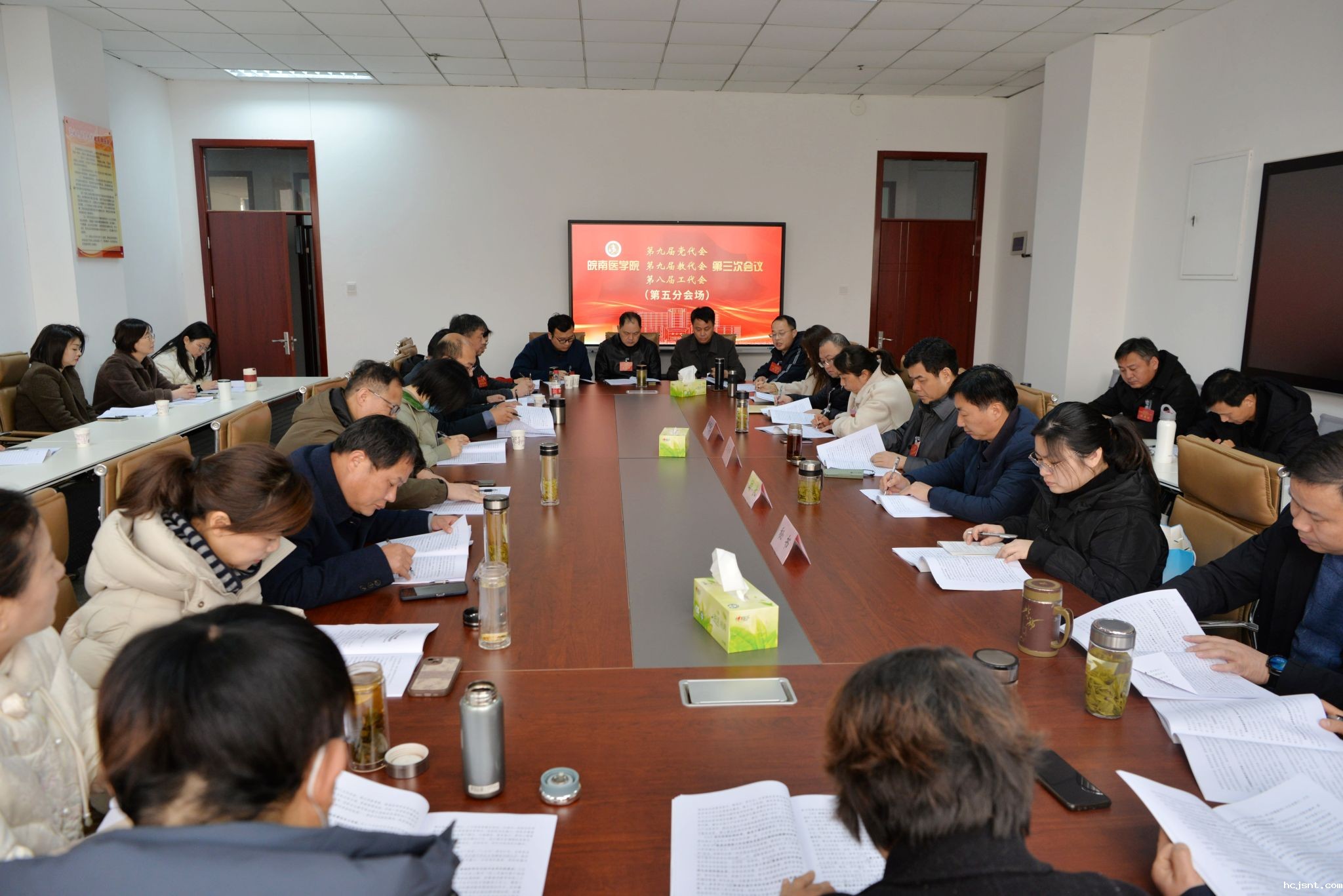 与会代表分六个代表团,围绕党政工作报告,纪委工作报告,教代会、工会工作报告,党费收缴、使用和管理情况报告,财务工作报告,提案工作报告等展开热烈讨论。代表们立足学校事业发展大局,以高度的政治责任感和强烈的历史使命感,认真履行职责,积极建言献策,提出了许多宝贵意见和建议,彰显了强烈的爱校情怀、荣校愿望、兴校担当。大家一致认为,校党政工作报告总结成绩客观实际,分析问题精准到位,发展目标催人奋进,部署工作务实有力。代表们纷纷表示将把思想和行动统一到学校部署上来,立足本职工作,主动作为、实干笃行,为学校高水平医科大学建设贡献智慧和力量。分组讨论结束后,大会召开代表团团长会议,集中听取了各代表团讨论情况的汇报。