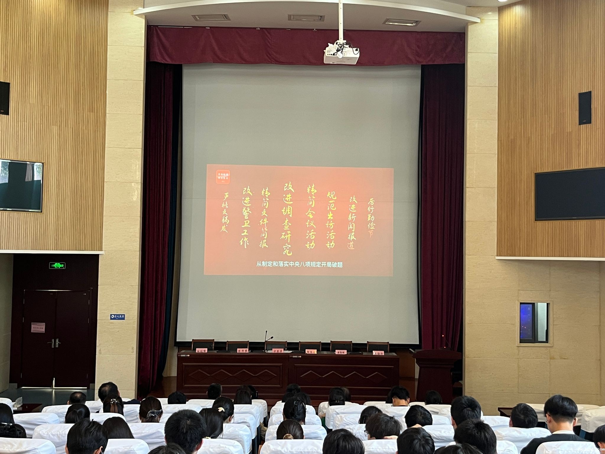 计票期间,与会党员集中观看了教育片《八项规定改变中国》。
