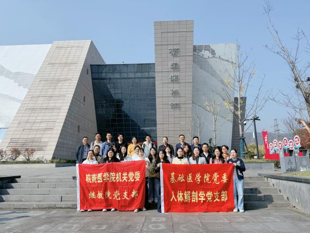 为深入学习贯彻党的二十届四中全会精神,深刻领会全会精神内涵,推动党建工作与红色教育深度融合,人体解剖学党支部联合校机关党委继教院党支部于11月16日赴繁昌区烈士陵园和繁昌博物馆开展“学全会精神·聚共建合力”主题党日共建活动。