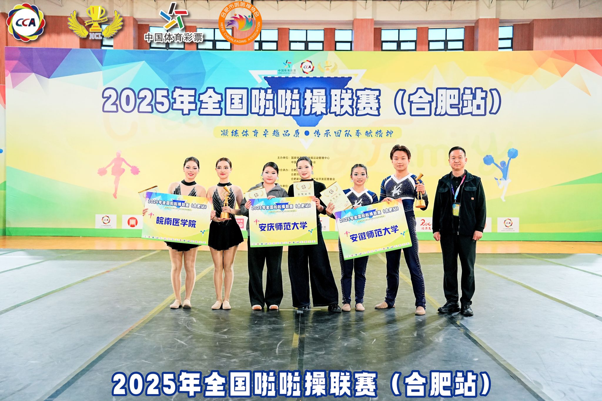 11月7日至9日,2025年全国啦啦操联赛(合肥站)在安徽圆满落幕。我校学子凭借精湛技艺与默契配合,在公开青年乙组双人爵士自选动作项目中脱颖而出,成功摘得桂冠,实现了我校啦啦操国家级赛事冠军零的突破。