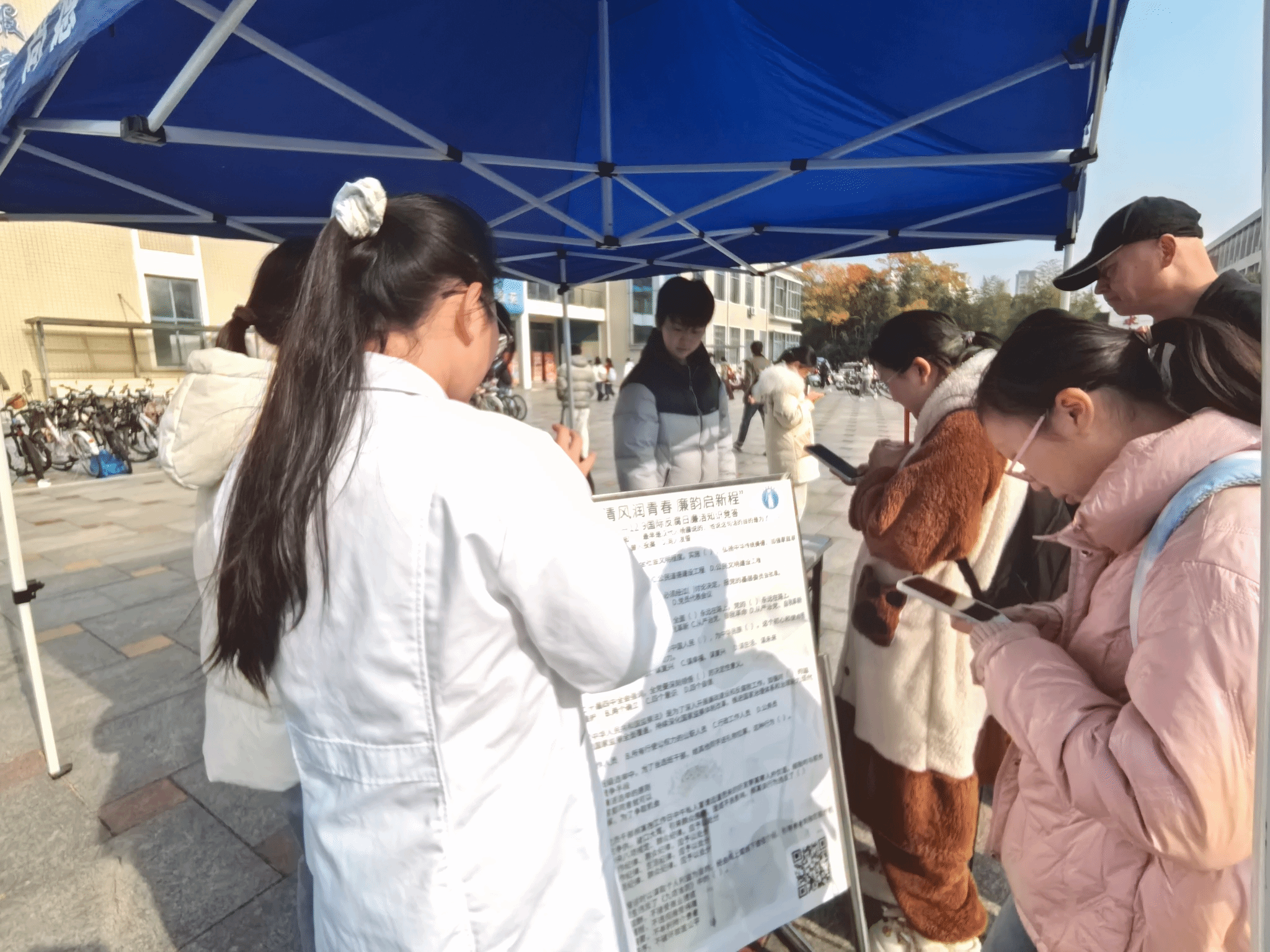 本次以“清风润青春 廉韵启新程”为主题的廉洁文化知识竞答活动,通过线下扫码答题的方式,有效引导广大同学学习廉洁文化,营造出浓厚的校园廉洁文化氛围,使廉洁理念深入人心,助力同学们在新的征程上肩负起青春的使命。(王璨、贾婉婷/文 章茜、李宸彬、袁乐天/摄)