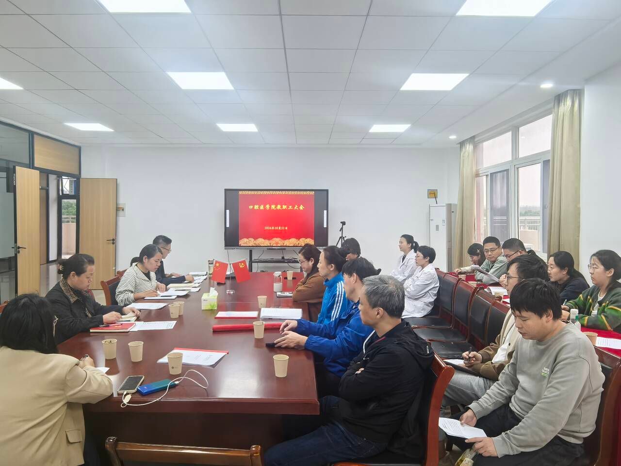10月21日下午,口腔医学院在学院会议室召开全体教职工大会暨政治理论学习会。口腔医学院全体教师参加会议,会议由学院党委书记柴琳主持。