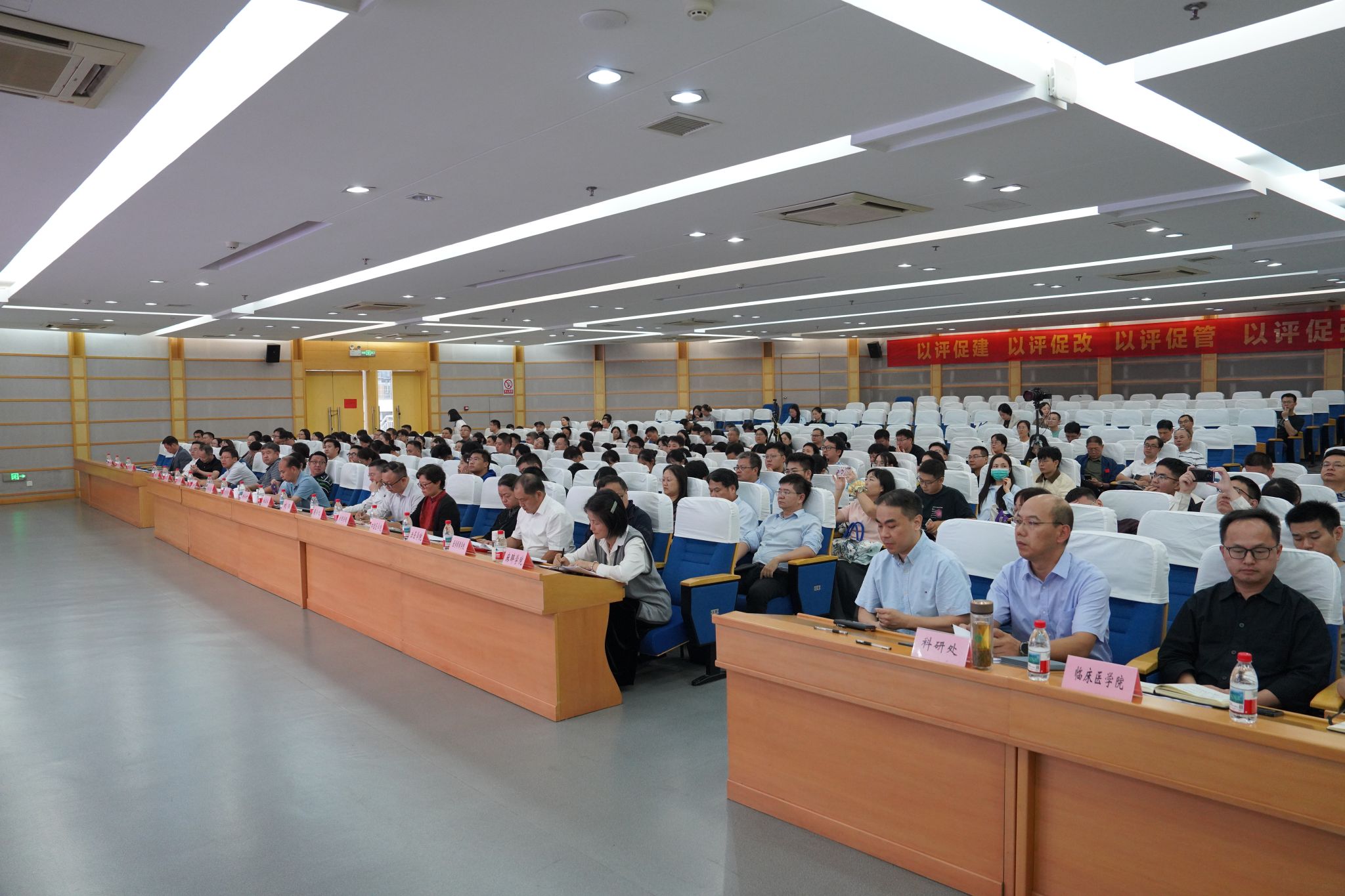 各二级单位党政负责人、近三年新进博士、部分三类及以上在研科研项目负责人、科研处相关人员现场参会,非直属附院的科技部门负责人和科技人员线上参会。(李佳曌/文 何丽、郭佳薇/摄)