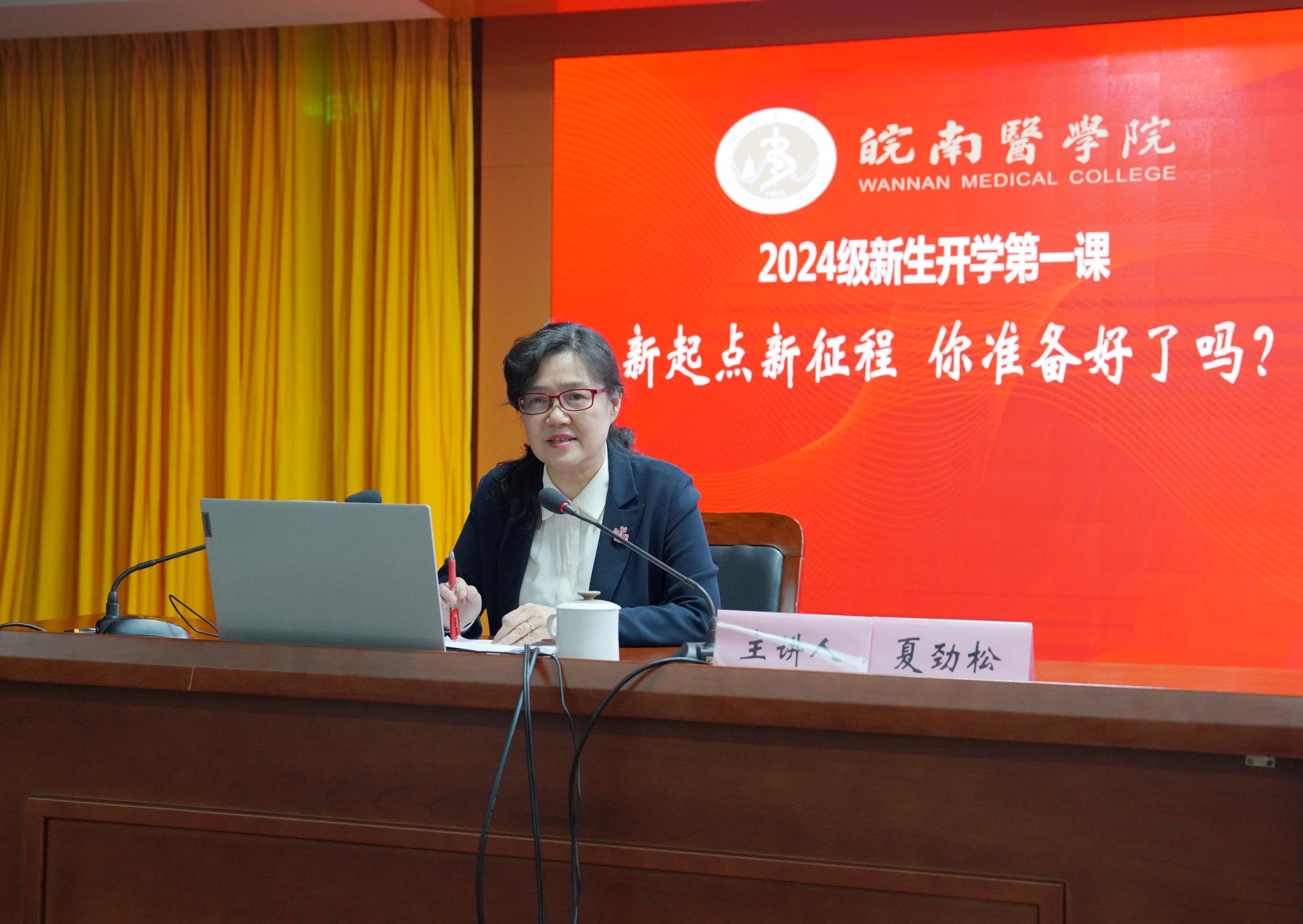 10月31日,党委书记夏劲松以“新起点 新征程 你准备好了吗”为题,为2024级3000余名本科学生讲授了一堂富有思想性和亲和力的“开学第一课”。她为同学们讲述了皖医及皖医人的故事,寄语新生秉承“精医、尚德、求实、自强”的校训,发扬“艰苦创业、求实自强、奉献社会”的皖医精神,博极医源、精勤不倦,用奋斗点亮青春活力,用奉献擦亮青春底色,努力成长为优雅文明、敢于担当、乐于奉献的优秀大学生。期望同学们怀揣“和皖医一起创造历史”的梦想,与皖医的发展同频共振、共同创造未来。
