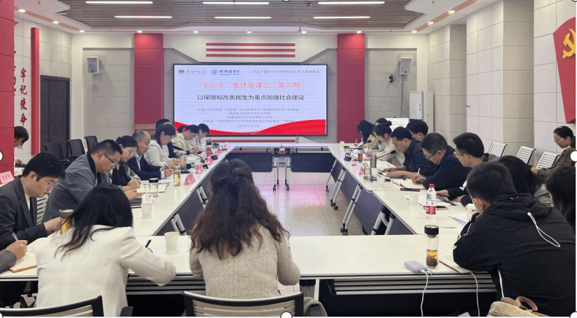 为全面深入学习贯彻党的二十届三中全会精神,推动全会精神进课堂,进一步落实思政课“立德树人”根本任务,提升思政课教学水平,11月16日上午,由全国高校思政课“手拉手”集体备课中心(安徽师范大学-安徽省)举办的第三十期集体备课会在我校举行。本次集体备课会聚焦“以保障和改善民生为重点加强社会建设”主题,我校马克思主义学院与安徽师范大学马克思主义学院专兼职思政课教师共同参会。安徽省“习近平新时代中国特色社会主义思想概论”分教指委主任委员、安徽师范大学马克思主义学院党委书记严宏,安徽师范大学马克思主义学院副院长李祥兴,我校马克思主义学院党总支书记邹莹、院长陶庭马、副院长张婧全程参与指导,备课会由安徽师范大学马克思主义学院“习近平新时代中国特色社会主义思想概论”课程组负责人沈燕培主持。