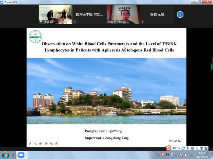 3月26日,应台湾元培医事科技大学邀请,我校组织学生参加了2021年国际暨两岸学生学术论文研讨会,这是我校自2012年来第九次参会,也是在后疫情时代首次以“云会议”的形式组织学生线上汇报及旁听。我校精心筹划,认真布置,在办公室网络信息中心和相关学院的大力支持和配合下,组织了近百名学生在滨江和赭麓校区集中收看论文研讨会直播,另有来自药学院、检验学院和研究生学院的6名优秀学子在线上用英文汇报学术论文。