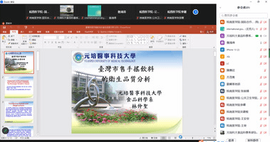 我校公共卫生学院的张庭婧和石玮两位老师分别从“超加工食品与高尿酸血症发生风险的关联分析”和“医学背景下的食品卫生与营养学专业人才培养”两个主题,通过翔实的数据分析,分享了我校在食品卫生与营养学上的学科发展、创新研究和人才培养等方面的举措和成果。元培医事科技大学食品科学系的梁弘人和林仲圣两位副教授也分别从“乳化香肠含肉率与质地相关性分析”和“台湾市售手摇饮料的卫生品质分析”为题,分享了他们在台湾食品卫生营养和加工工艺上的研究。
