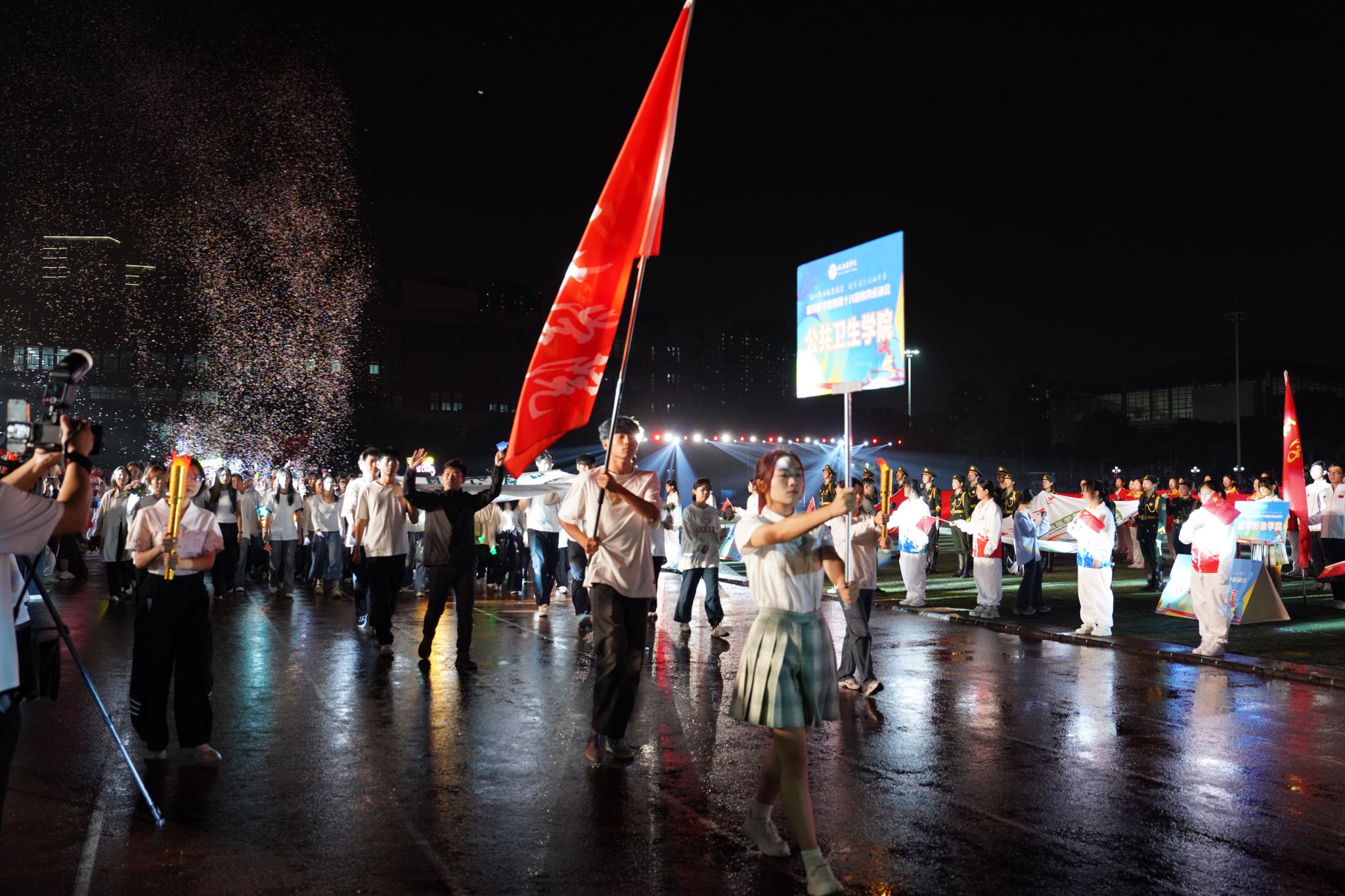 青春似火逐秋日,奋勇拼搏正当时。10月16日晚上7时整,学校第四十六届体育运动会在运动场隆重开幕。校领导夏劲松、贾贤燕、王保中、韩永升、余结根出席开幕式,北京天坛医院安徽医院、附属太和医院、附属皖南康复医院、附属北京安定医院芜湖医院等医院负责人,运动会组委会成员,裁判员,运动员,学生代表参加开幕式。开幕式由党委常委、副院长余结根主持。