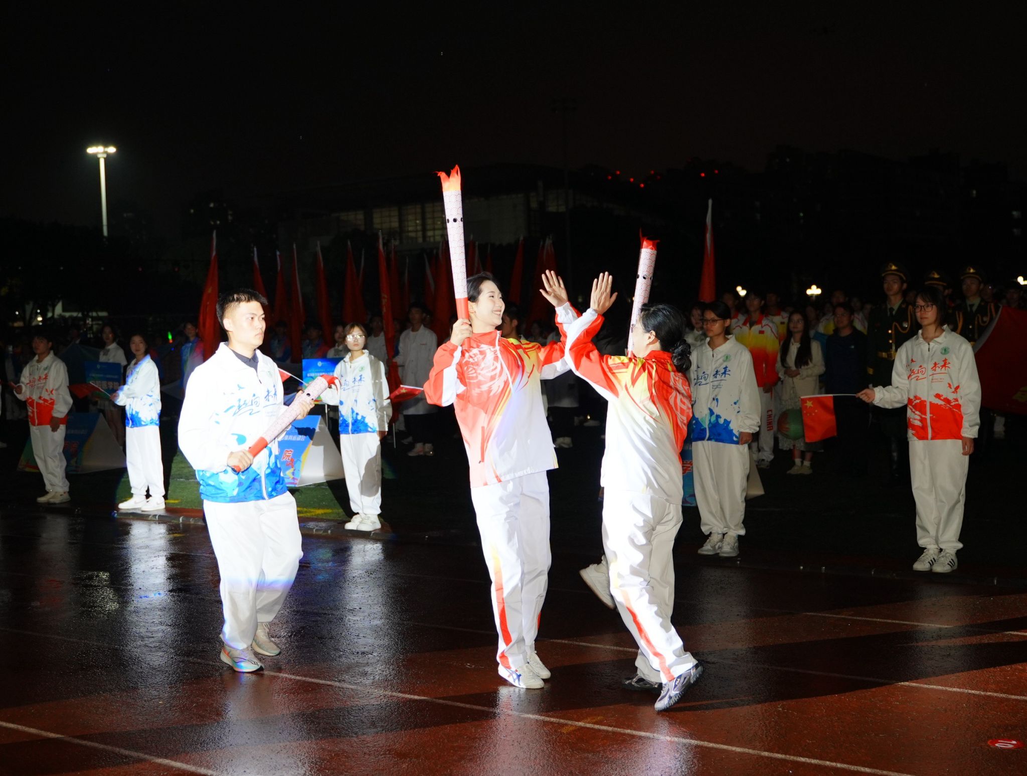 “薪火”相传,生生不息。火炬传递及点火仪式成为开幕式亮点之一。现场大屏幕播放1958-2025火炬传递视频,展示着皖医六十余载的发展之路。随后,由校领导、离退休教职工、教师、学生等代表组成的十名护旗手接力护跑。他们高举火炬,汇聚起更快、更高、更强、更团结的信念。党委书记夏劲松接力最后一棒火炬,并点燃主席台上的主火炬。熊熊燃烧不止有火炬,更有全体师生的激情与梦想。立足新起点、逐梦新征程,全体皖医人将以锐意进取、力争上游的奋进之姿,砥砺前行再创新辉煌。