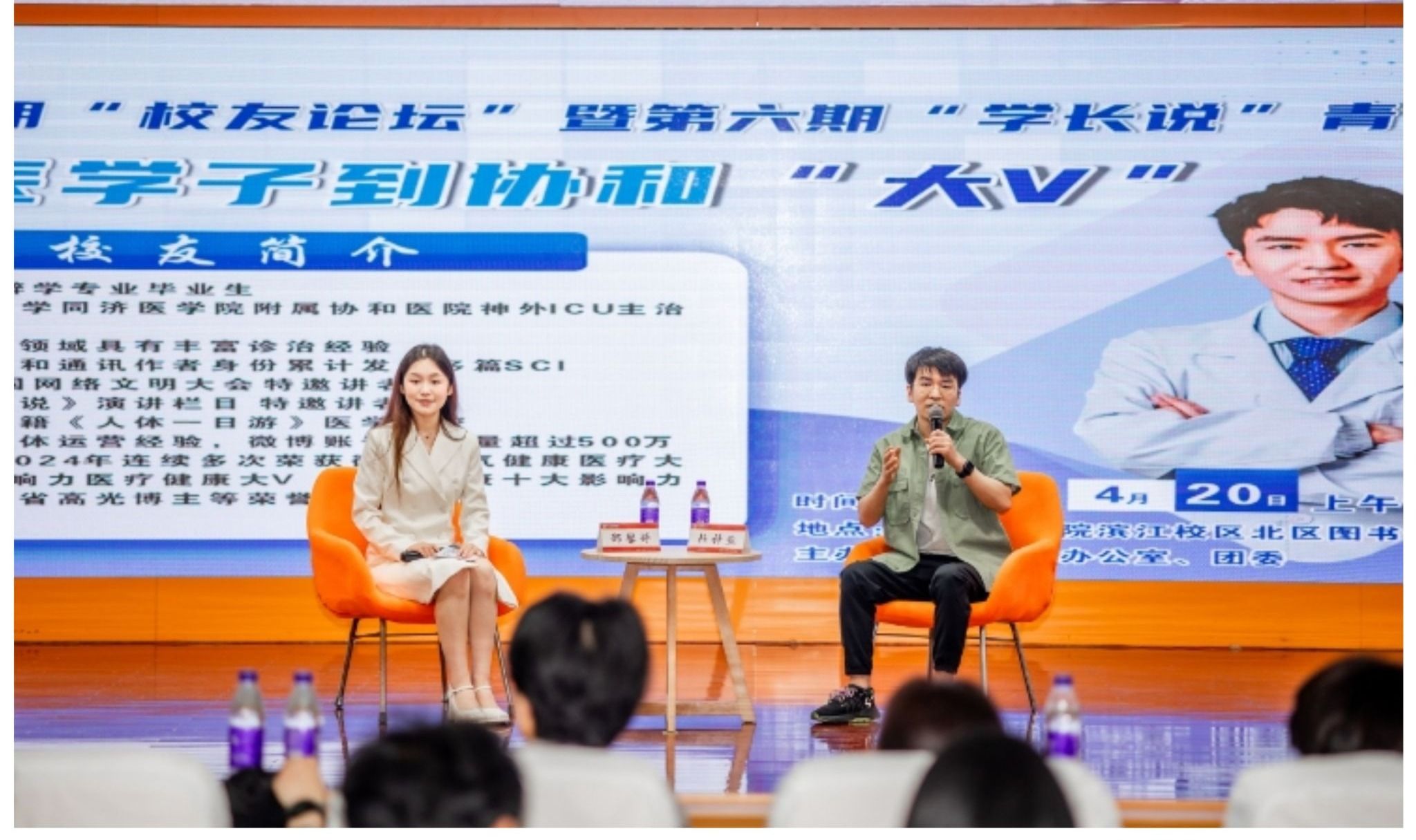 以榜样为镜,向未来启航。4月20日,我校第十一期"校友论坛"暨第六期"学长说"青春讲坛在图书馆三楼学术报告厅举行。本次活动邀请到2015届麻醉学专业优秀校友、华中科技大学同济医学院附属协和医院神外ICU主治医师、医疗健康领域知名大V杜科业重返母校,与400余名师生分享其从皖医求学到协和执医的成长故事与人生感悟。校友工作办公室、团委和麻醉学院同志参加活动。