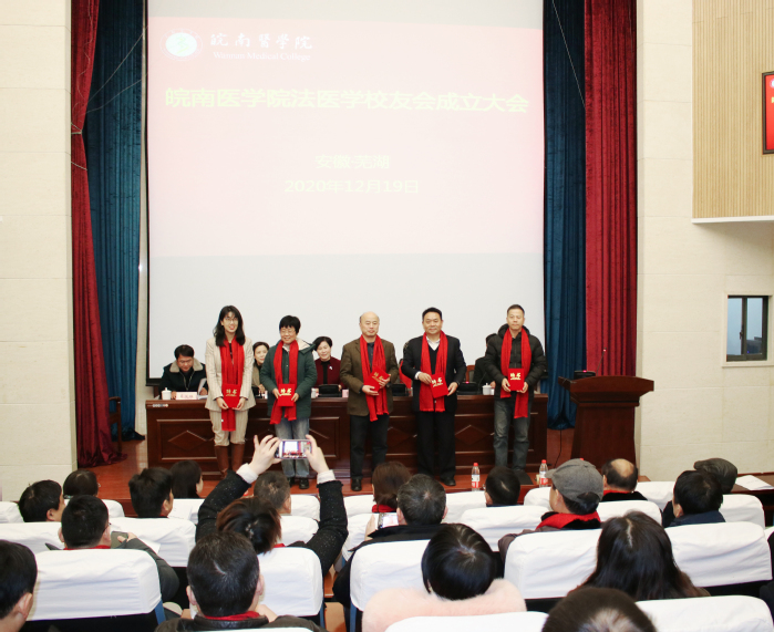 随后,参会领导为新当选的法医学校友会理事代表颁发聘书,赵梅与吴茂旺共同为九游会ag318法医学校友会揭牌。