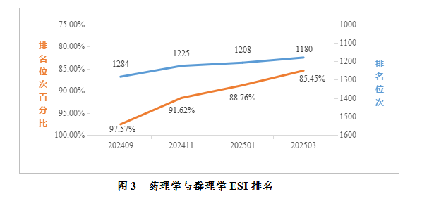药理学与毒理学:据2025年3月数据统计,我校药理学与毒理学进入ESI前1%。全球共1381家进入全球前1%,我校位于全球第1180名,排名较1月上升28位,较去年9月上升104位;位次百分比为85.45%,较1月份提升3.31%,较去年9月上升12.12%。
