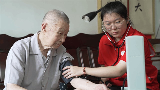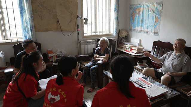 上午,学生志愿者及带队老师们前往芜湖市第二炮兵干休所回访慰问退伍军人汪业怀、顾坚夫妇,首先向他们夫妇致以节日的祝福和问候,并带去了慰问品,同时进行了血压测量等常规健康检测。随后,汪业怀、顾坚夫妇带领志愿者们回顾了他们当年在部队的军旅生涯,同时阐述了他们从了解遗体捐献到选择遗体捐献的故事,两位老人对生命的意义和价值有独到的见解,汪爷爷表示:殡葬改革须从自身做起,尤其是党员要发挥先锋模范带头作用,不能让坟墓占据太多国家的土地资源,因此,他们自愿选择无偿在去世后捐献自己的遗体和角膜。他们的英雄事迹打动了在场的每一个人,志愿者们纷纷表示要传承他们的大爱和无私奉献精神。