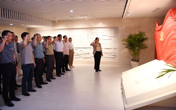 参观活动结束后,夏劲松带领全体党员干部在党旗下庄严宣誓,重温入党誓词。