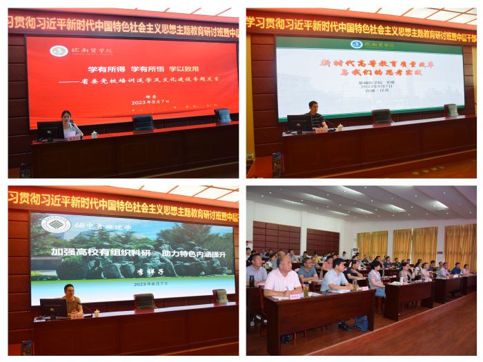 为深入推进学习贯彻习近平新时代中国特色社会主义思想主题教育,推动更名大学、本科教育教学审核评估和博士学位授予单位立项建设,8月4日至7日,我校在泾县县委党校举办学习贯彻习近平新时代中国特色社会主义思想主题教育研讨班暨中层干部暑期培训班。