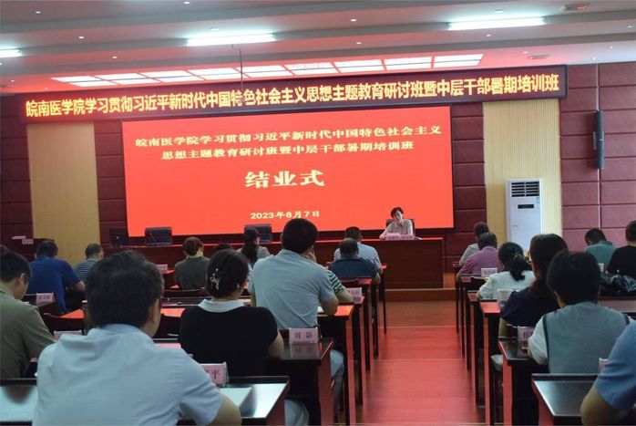 7日上午,贾贤燕主持培训班结业式。她充分肯定了本次培训效果,并提出四点要求:一是认识再深化。更名大学、博士点建设承载着几代皖医人的梦想,要进行广泛思想动员,将这种认识转化为坚定的意志、统一的行动。二是责任再压实。要聚焦学校重点工作做好任务分解,做到人人身上有指标,层层夯实工作责任。三是行动再发力。要落实好“五大”要求、“六破六立”研讨和教育思想大讨论成果,在更新思想观念、突破惯性思维、精准施策上再发力,最大限度调动教职医护员工积极性和创造性。四是推进再提速。全面盘点年度117项重点任务落实情况,做好新学期开学准备工作,做实主题教育“后半篇文章”,将主题教育成效转化为学校高质量发展实效。