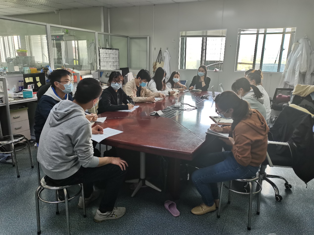 会上,裴文俊老师按照“五严禁、两务必”原则对疫情期间本实验平台科研人员和学生作出了要求:严禁实验无关人员进入实验室,严禁从事饮食、娱乐等其他与实验无关活动,严禁在实验场所留宿,严禁实验室开放但无人值守,严禁单人在实验室进行过夜实验;务必做好人走“三断两关”,防患未然,确保安全;务必按规定做好实验场所疫情防控工作,防范实验场所疫情发生。吕梦娟老师就实验室安全及卫生情况提出要求:实验室试剂标签及危化品废液标签张贴不完整, 请各实验室的老师和同学规范地为试剂张贴标签,应做到所有化学品和配置试剂“标签明确,信息完整”;其次实验室卫生情况还需进一步加强,务必使实验室保持清洁, 为科学实验创造良好的环境;最后通知会后将进行危化品自查。